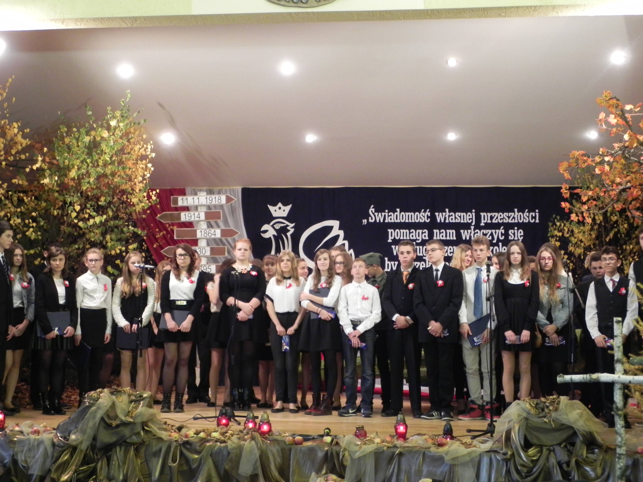Część artystyczną zaprezentowali uczniowie Zespołu Szkół w Gębicach. Był to niezwykle trafiony, wysublimowany montaż słowno-muzyczny dotyczący znajomości Narodowego Święta Niepodległości we współczesnym świecie. Zgromadzeni mieli niepowtarzalną okazję do wielu wzruszeń śpiewając wraz z występującymi gimnazjalistami piosenki patriotyczne - takie, jak „My pierwsza Brygada", „Piechota", wsłuchując się w wiersze Różewicza, Norwida, Gałczyńskiego, Staffa, Mickiewicza. Wszystko to działo się w scenerii lasu - niemego świadka tylu wzniosłych zdarzeń, gdzie wielu zamknęło oczy po raz ostatni, a także samolotu i drogowskazów przywołujących daty istotnych wydarzeń niepodległościowych. Obchody Rocznicy Odzyskania Niepodległości były ucztą dla serc rozkochanych w polskiej poezji i piosence patriotycznej. Szczególnie w pamięć zapadł wiersz Artura Oppmana