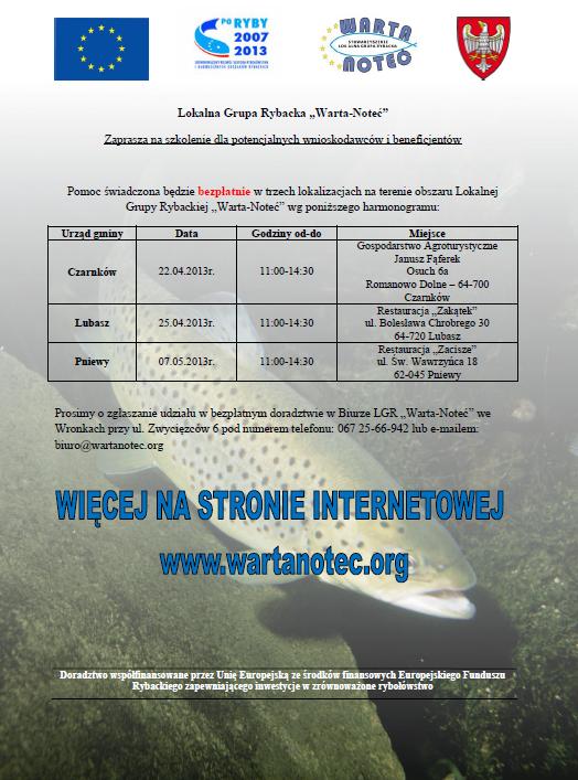 lokalna Grupa Rybacka Warta Noteć zaprasza na bezpłatne szkolenia