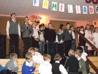 Po nich wystąpili uczniowie miejscowej szkoły z nieco innym programem, w formie FAMILIADY. Do udziału zaproszono dwie drużyny: babć i dziadków (autentycznych). No prawie, za wyjątkiem jednego „przyszłościowego dziadka”. Familiadę poprowadził wnuk Robert.