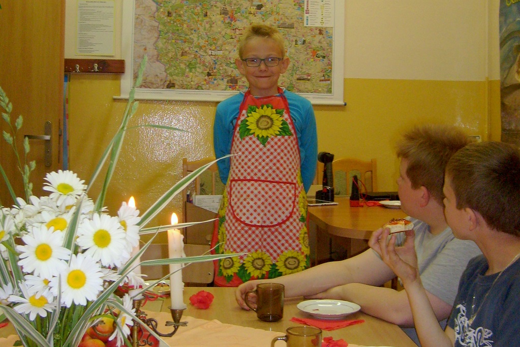 W ramach ogólnopolskiej akcji „Noc bibliotek" nasza szkolna biblioteka otworzyła swoje podwoje o niecodziennej porze. Uczniowie klasy czwartej przybyli do szkoły o godz. 1900 . Ustalono zasady, które obowiązywały każdego uczestnika spotkania i ... zaczęło się. W szkolnej kuchni dziewczęta piekły rogaliki z powidłami, chłopcy nakrywali stoły do kolacji i szykowali salę do nocnego „niespania". Cały czas panowała atmosfera radości, wpływała na to świadomość, że innych uczniów nie ma w szkole a jeszcze tyle wrażeń. Wiele śmiechu wywołały „literackie przebieranki", kiedy wszyscy przeobrażali się w postacie z bajek, lektur. Nieocenione okazały się zasoby szkolnej szafy. Kolorowe suknie, kapelusze, diabelskie rogi... Po korytarzach, niczym po wybiegu, przechadzały się duchy, Kopciuszek, Czerwony Kapturek, wróżka, szpak Mateusz, zły wilk, czarodziej i inne książkowe postacie. Ten barwny korowód zawędrował o biblioteki. Rozpoczęły się poszukiwania zaginionych okularów pani Renaty. Zaszczytny tytuł SHERLOCKA HOLMESA zdobyła Amelia, która wśród półek i licznych zakamarków odszukała „zgubę". Za oknem robiło się coraz ciemniej, puste korytarze sprawiały niesamowite wrażenie a w świetlicy... trwała kolacja przy świecach.