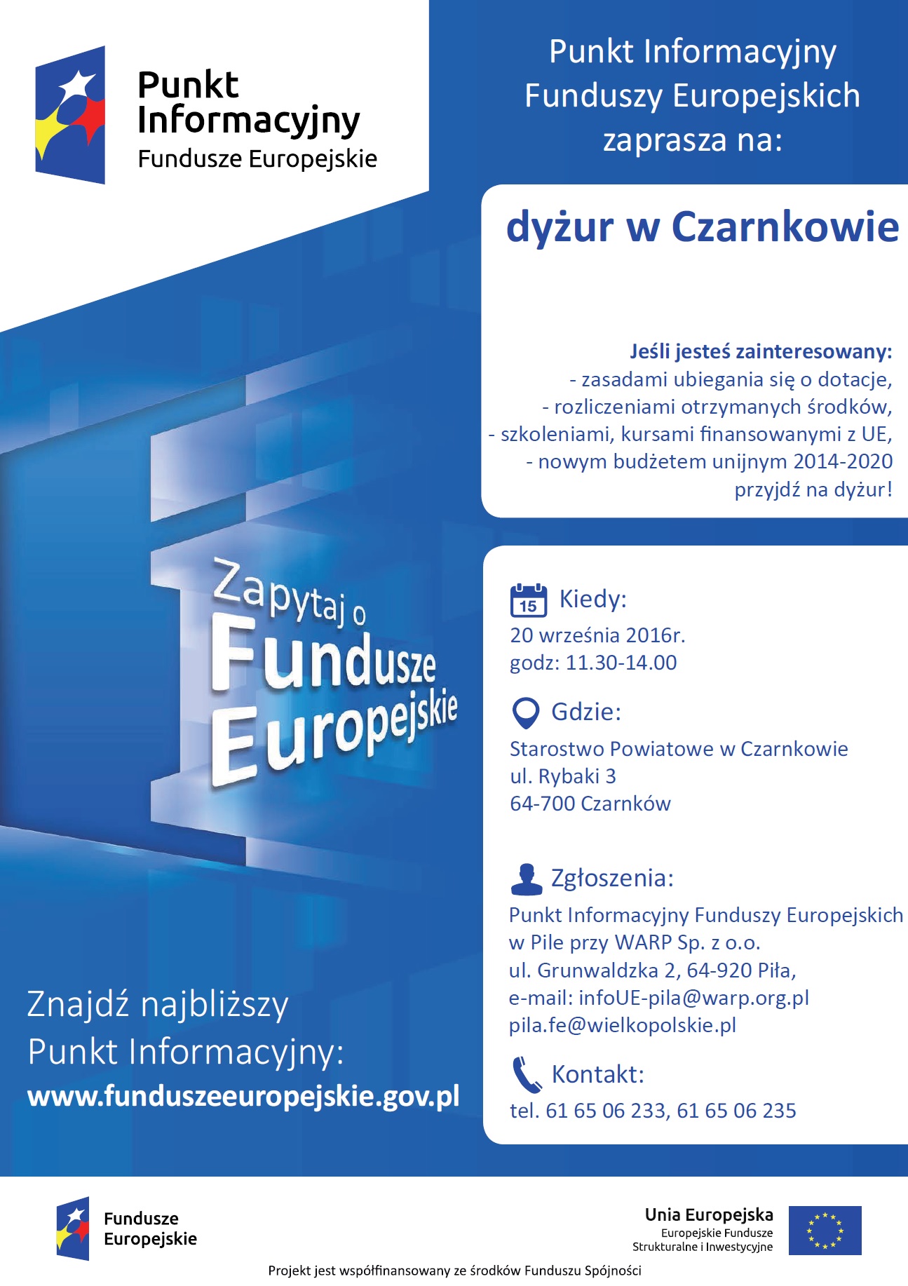 Punkt Informacyjny Funduszy Europejskich zaprasza na dyżur w Czarnkowie