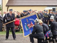 W dalszej części uroczystości nastąpiło odsłonięcie tablicy pamiątkowej z figurką św. Floriana oraz przecięcie wstęgi i otwarcie nowej części remizy OSP.