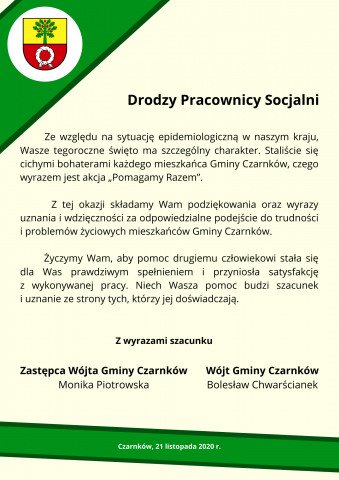 Dnia 21 listopada 2020 roku w Polsce obchodzimy Dzień Pracowników Socjalnych, a więc cichych bohaterów każdego mieszkańca Gminy Czarnków.