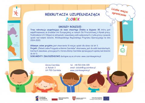 Trwa rekrutacja uzupełniająca do nowo otwartego żłobka w gminie Czarnków !!! Osoby zainteresowane udziałem w projekcie „ŻŁOBEK LEŚNA PRZYGODA W GMINIE CZARNKÓW" zapraszamy do składania dokumentów zgłoszeniowych