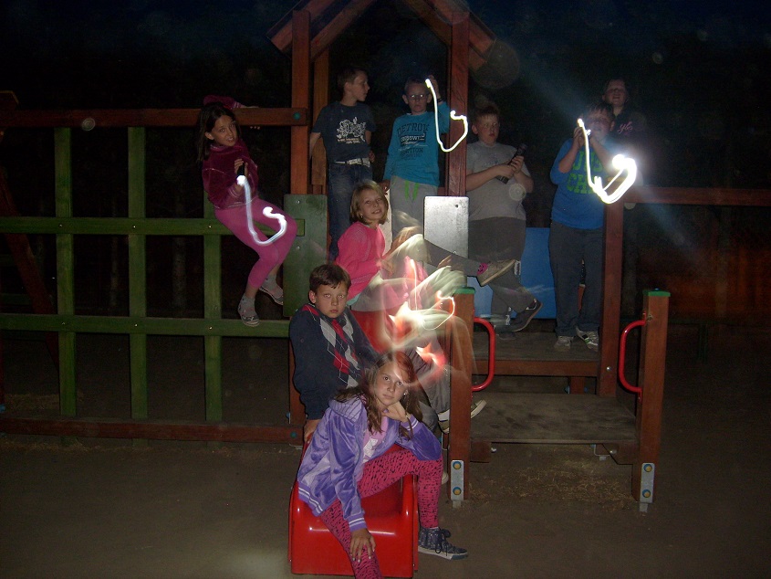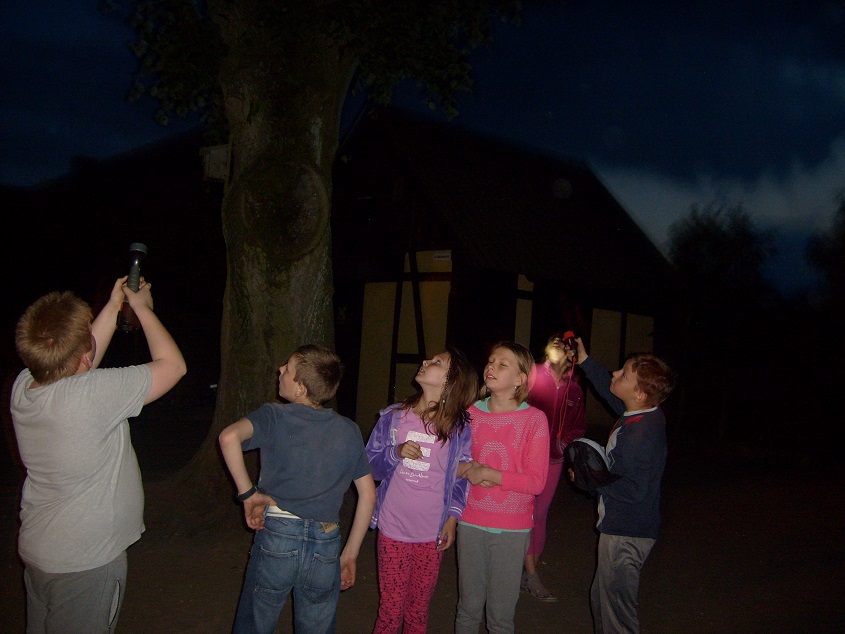 W ramach ogólnopolskiej akcji „Noc bibliotek" nasza szkolna biblioteka otworzyła swoje podwoje o niecodziennej porze. Uczniowie klasy czwartej przybyli do szkoły o godz. 1900 . Ustalono zasady, które obowiązywały każdego uczestnika spotkania i ... zaczęło się. W szkolnej kuchni dziewczęta piekły rogaliki z powidłami, chłopcy nakrywali stoły do kolacji i szykowali salę do nocnego „niespania". Cały czas panowała atmosfera radości, wpływała na to świadomość, że innych uczniów nie ma w szkole a jeszcze tyle wrażeń. Wiele śmiechu wywołały „literackie przebieranki", kiedy wszyscy przeobrażali się w postacie z bajek, lektur. Nieocenione okazały się zasoby szkolnej szafy. Kolorowe suknie, kapelusze, diabelskie rogi... Po korytarzach, niczym po wybiegu, przechadzały się duchy, Kopciuszek, Czerwony Kapturek, wróżka, szpak Mateusz, zły wilk, czarodziej i inne książkowe postacie. Ten barwny korowód zawędrował o biblioteki. Rozpoczęły się poszukiwania zaginionych okularów pani Renaty. Zaszczytny tytuł SHERLOCKA HOLMESA zdobyła Amelia, która wśród półek i licznych zakamarków odszukała „zgubę". Za oknem robiło się coraz ciemniej, puste korytarze sprawiały niesamowite wrażenie a w świetlicy... trwała kolacja przy świecach.