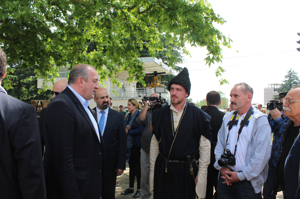 Że będzie nielekko, ale ciekawie, z zaskakującymi niespodziankami, przekonaliśmy się już na lotnisku w Kutaisi. Konstantine Nachqebia, dla wszystkich już Kote, czekał na nas wraz z urokliwą młodzieżą w gruzińskich strojach. Tego bowiem dnia jego stowarzyszenie Pro Motion Georgia organizowało obchody Dnia Narodowego Stroju Gruzińskiego. Dla gości z Polski była to więc nie lada gratka, wyjątkowa tym bardziej, że z uczestnictwem prezydenta Gruzji Giorgiego Margwelaszwili, któremu każdego z członków czarnkowskiej delegacji przedstawiono. A na koniec dnia kolacja w towarzystwie grającej i śpiewającej gruzińskie utwory "młodzieży". Czterech mężczyzn, brzmiących jak ośmiu, albo i więcej - coś zachwycającego.