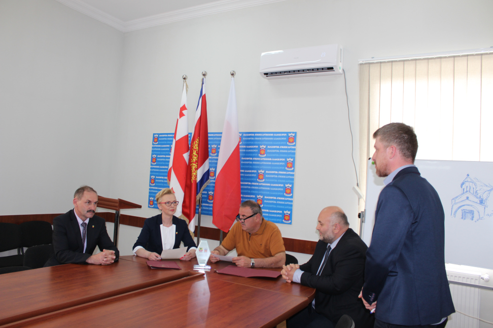 I wreszcie najważniejszy dzień wizyty przedstawicieli gminy Czarnków w Gruzji. 23 maja, w odpowiedzi na osobiste zaproszenie przewodniczącego Rady Gminy Martvili Aleksandre Gabisonia, przewodniczący Rady Gminy Czarnków Janusz Wielgosz wraz z całą delegacją wzięli udział w sesji Rady Gminy Martvili. Po zakończeniu spotkania Monika Piotrowska - zastępca wójta gminy Czarnków, reprezentująca gminę Czarnków oraz Aleksandre Grigalava - burmistrz gminy Martvili, podpisali oficjalnie partnerską umowę o współpracy pomiędzy pomiędzy naszymi gminami. Obie strony z akceptacją i zadowoleniem przyjęły ten dokument potwierdzając w ten sposób wolę dalszej owocnej współpracy. A po południu delegacja odwiedziła Szkołę Wiejską w Sergieti, prowadzoną przez dyrektor Nato Gegetchkori. Uczniowie tej placówki słyną z talentów muzycznych i zdobywają nagrody w konkursach organizowanych w całym kraju. I tym razem Polska grupa z zachwytem podziwiała umiejętności śpiewających dzieci, którym na pianinie akompaniowała nauczycielka muzyki. Pracowity dzień zakończyła wizyta w wiosce Najakho, w której urząd Martvili odbudował od podstaw przedszkole. Tego dnia odbyło się oficjalne otwarcie nowego budynku, a przecięcia wstęgi dokonali wspólnie Monika Piotrowska i Aleksandre Grigalava. Dodatkowej radości dostarczył przedszkolakom Miron Skrzeczkowski, członek Stowarzyszenia Kociołki, który zakupił dla dzieci dużą ilość gier i zabawek.
