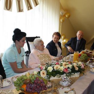 Dla Pani Zofii przybycie tak wielu osób było miłym zaskoczeniem, a zarazem wielkim przeżyciem. Była bardzo wzruszona. Po życzeniach i wymianie serdeczności, wszyscy zasiedli przy urodzinowym torcie.
