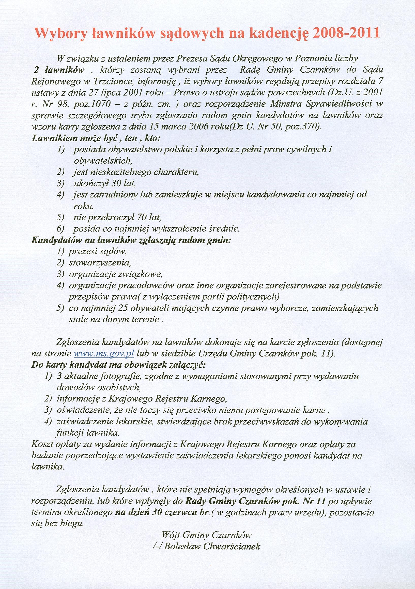 Wybory ławników sądowych na kadencję 2008 - 2011